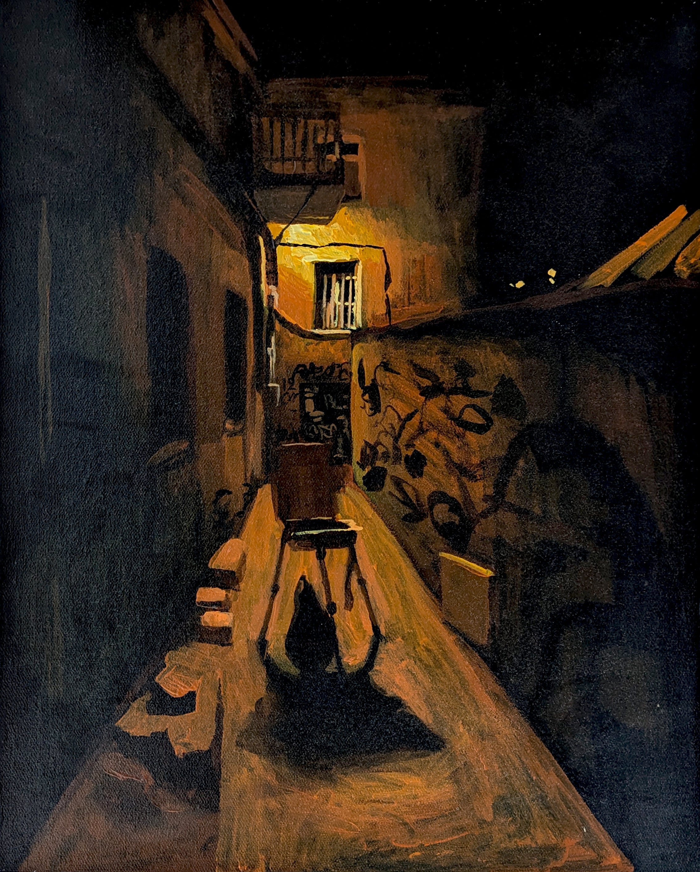 Luka Kiknadze’s artistic style is a masterful blend of mysticism, impressionism, and expressionism. It is characterized by a contemporary aesthetic that reflects the brightness and solitude of city life. Through the subtle interplay of light and shadow, L. Kiknadze creates night scenes that express both the energy and introspection of the urban environment. His use of dynamic lines with textured brushstrokes and rich color contrasts creates a sense of movement and emotional depth in his compositions. By focusing on the interplay of artificial light and shadow, L. Kiknadze transforms lifelike urban landscapes into a moving narrative and challenges the viewer to reflect on the complexities of modern existence. The artist’s innovative approach and technical mastery establish him as a compelling voice in contemporary art.